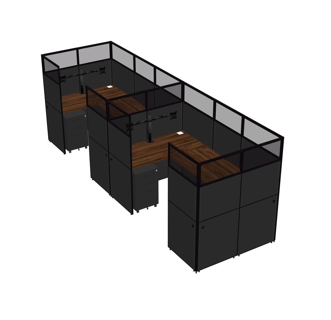 Système De Panneaux En U En Noyer Columbia Pour 2 Personnes + Bras D'écran (bras Doubles) + Tiroirs Mobiles En Métal Pour 2 Utilisateurs