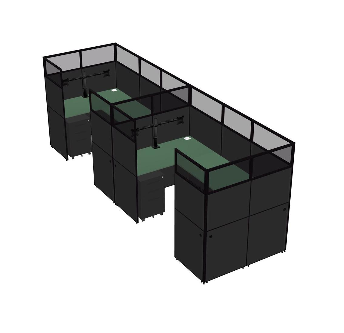 Système De Panneaux En U Vert Pour 2 Personnes + Bras De Moniteur (bras Doubles) + Tiroirs Mobiles En Métal Pour 2 Utilisateur(s)