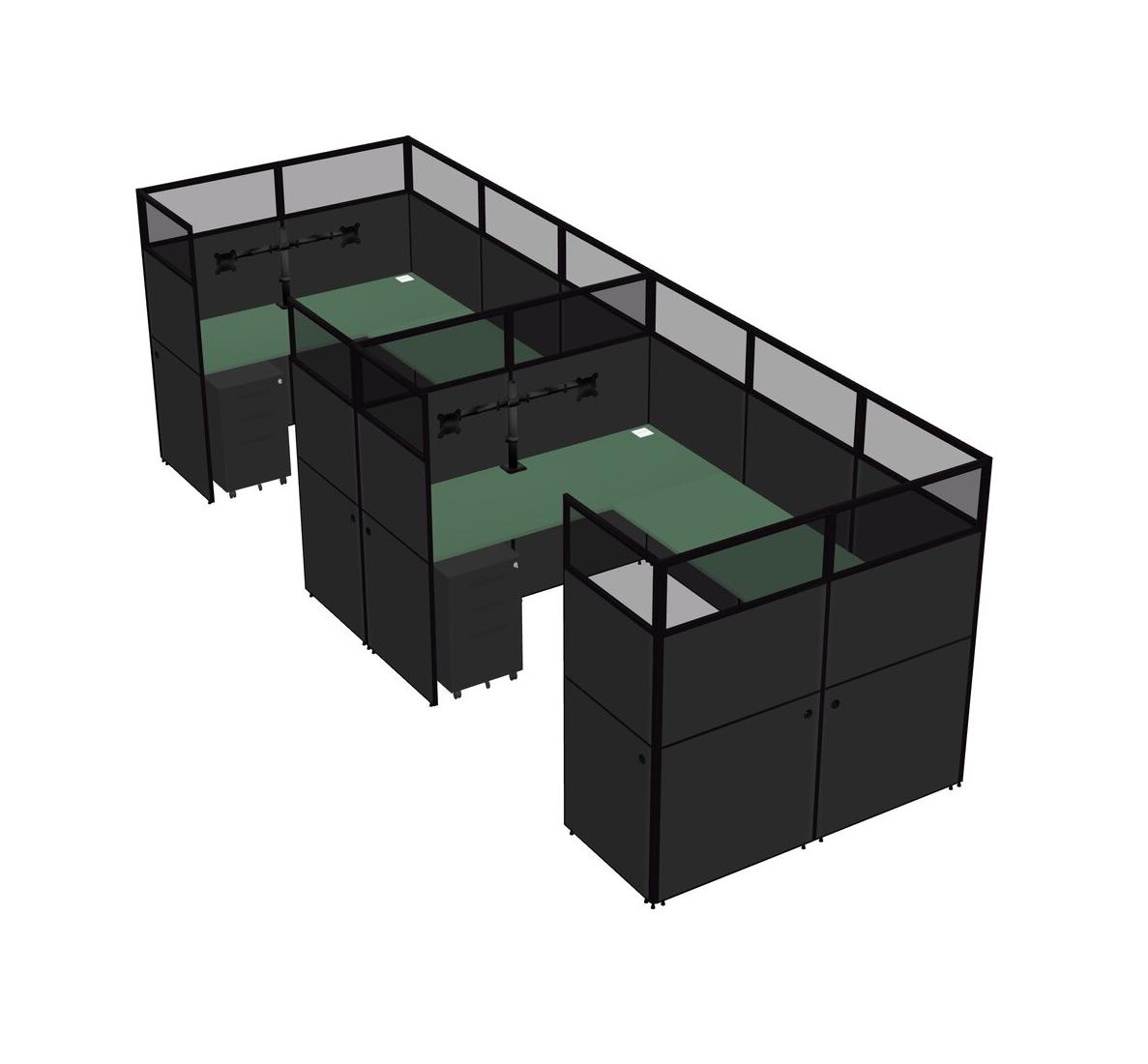 Système De Panneaux En U Vert Pour 2 Personnes + Bras De Moniteur (bras Doubles) + Tiroirs Mobiles En Métal Pour 2 Utilisateur(s)