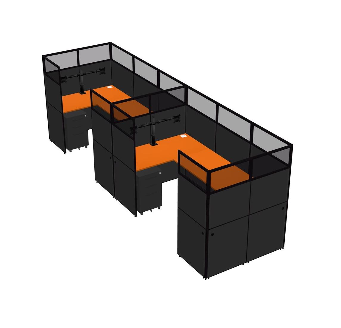 Système De Panneaux En U Orange Pour 2 Personnes + Bras De Moniteur (bras Doubles) + Tiroirs Mobiles En Métal Pour 2 Utilisateur(s)