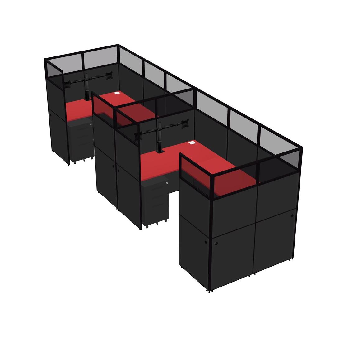 Système De Panneau En U Prism Red Pour 2 Personnes + Bras D'écran (bras Doubles) + Tiroirs Mobiles En Métal Pour 2 Utilisateur(s)