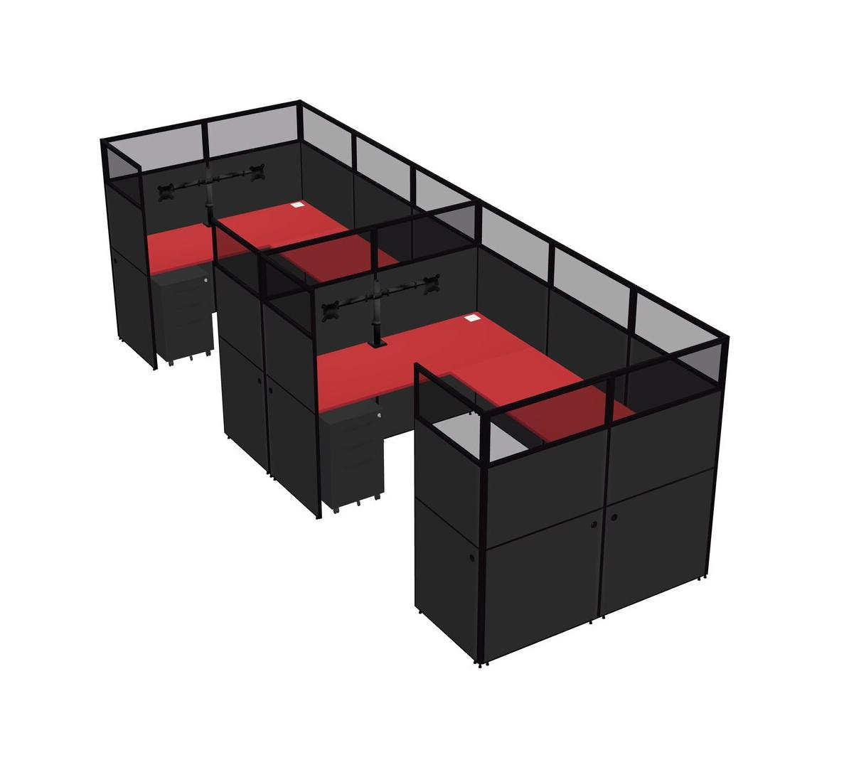 Système De Panneau En U Prism Red Pour 2 Personnes + Bras D'écran (bras Doubles) + Tiroirs Mobiles En Métal Pour 2 Utilisateur(s)