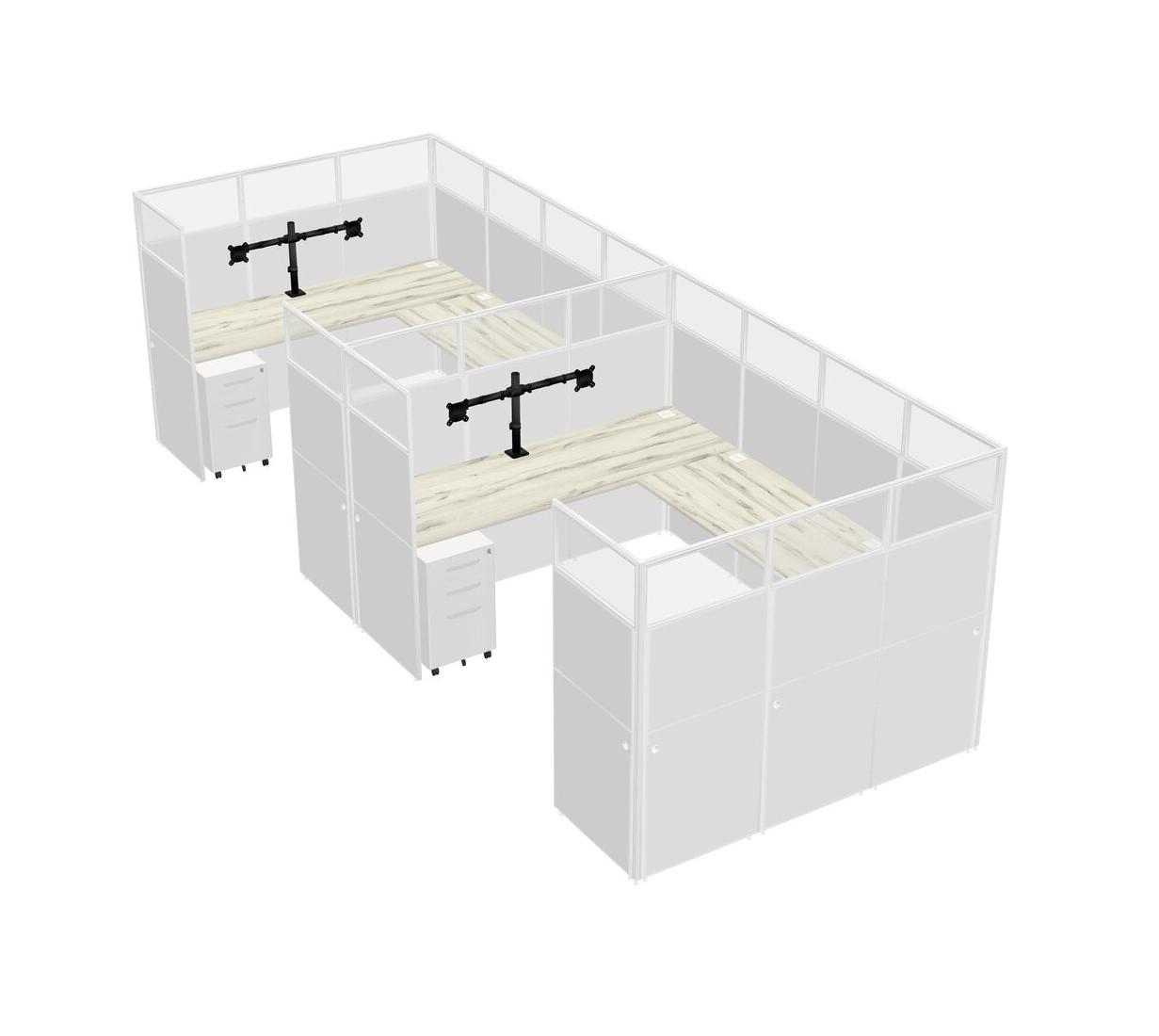 Système De Panneaux En U Heinne Holz Pour 2 Personnes + Bras D'écran (bras Doubles) + Tiroirs Mobiles En Métal Pour 2 Utilisateur(s)