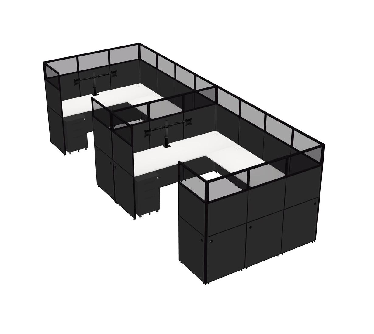 Système De Panneaux En U Blanc Pour 2 Personnes + Bras D'écran (bras Doubles) + Tiroirs Mobiles En Métal Pour 2 Utilisateurs