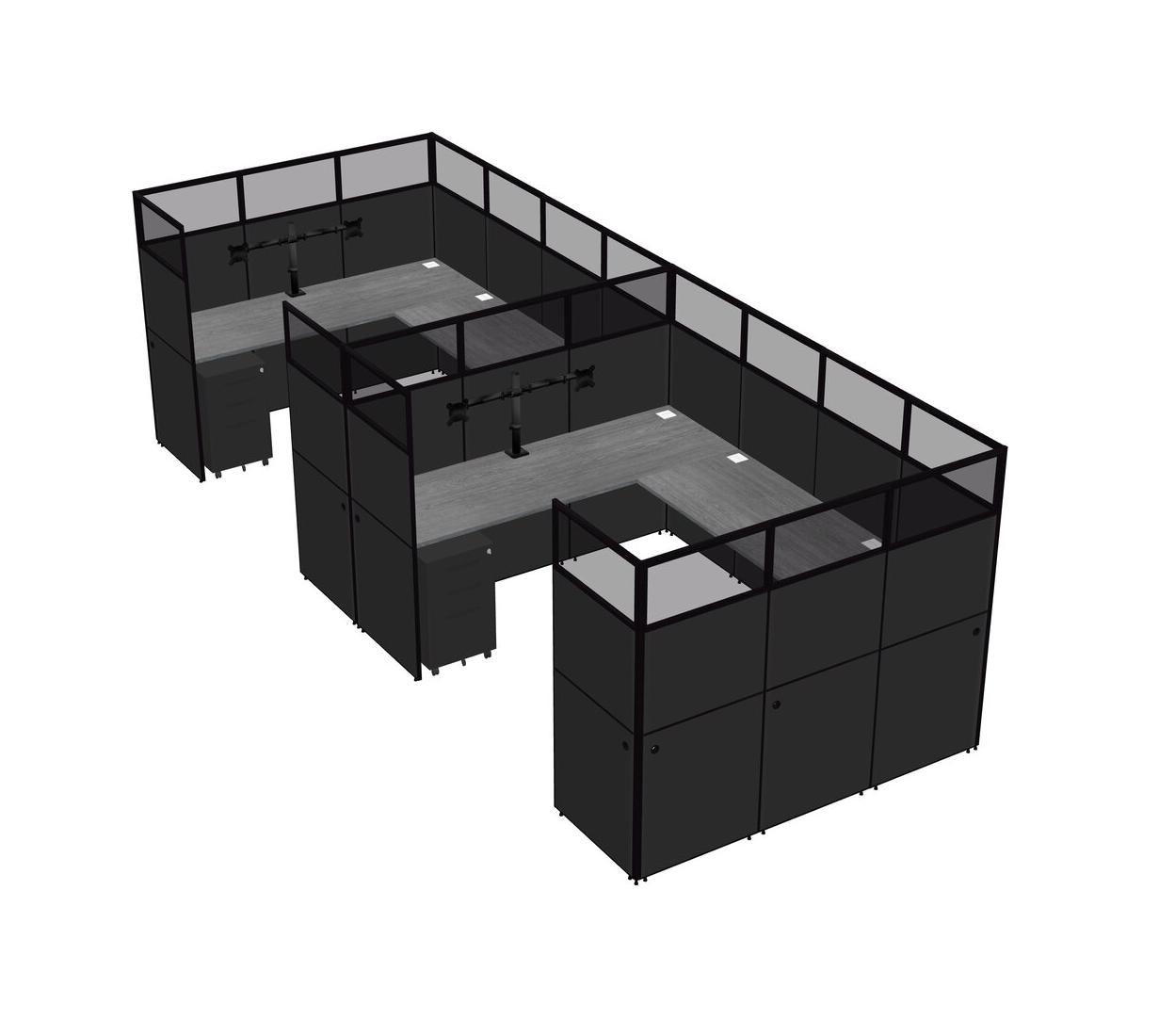 Système De Panneaux En U Gris Pour 2 Personnes + Bras D'écran (bras Doubles) + Tiroirs Mobiles En Métal Pour 2 Utilisateurs