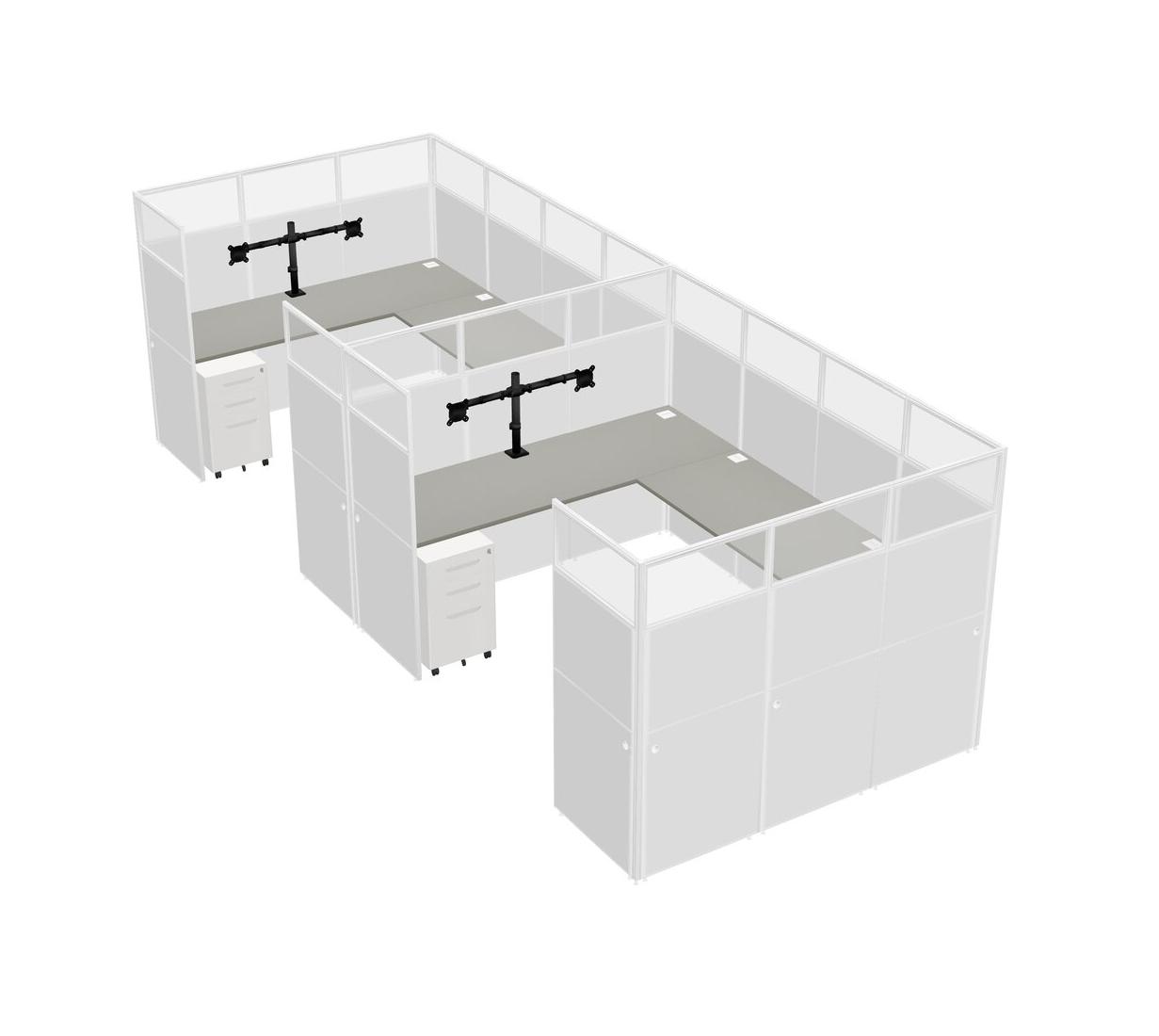 Système De Panneaux En U Grey Shadows Pour 2 Personnes + Bras D'écran (bras Doubles) + Tiroirs Mobiles En Métal Pour 2 Utilisateur(s)