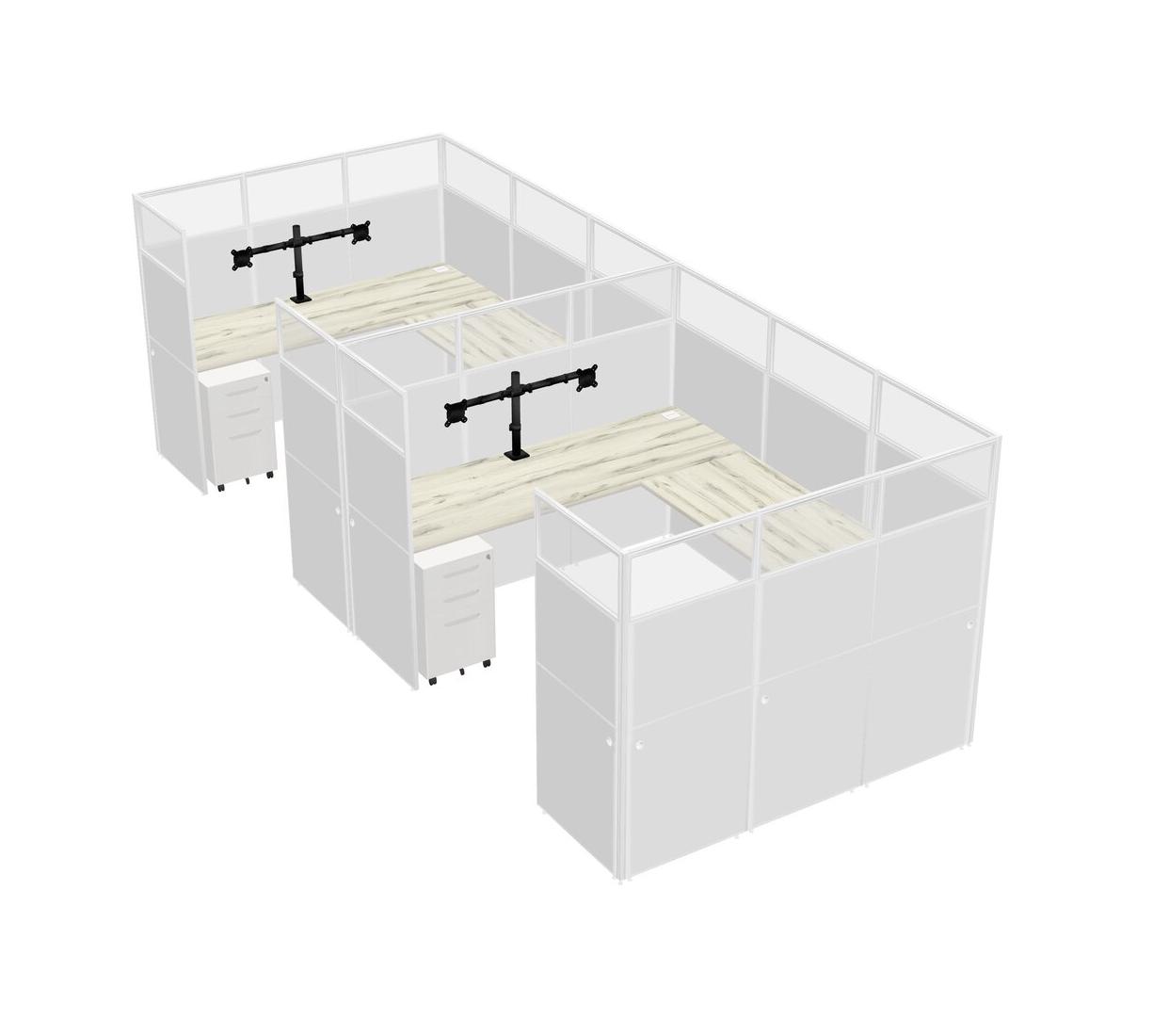 Système De Panneaux En U Heinne Holz Pour 2 Personnes + Bras D'écran (bras Doubles) + Tiroirs Mobiles En Métal Pour 2 Utilisateur(s)