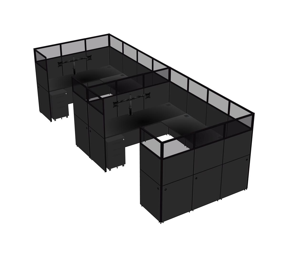 Système De Panneaux En U Noir Pour 2 Personnes + Bras D'écran (bras Doubles) + Tiroirs Mobiles En Métal Pour 2 Utilisateur(s)
