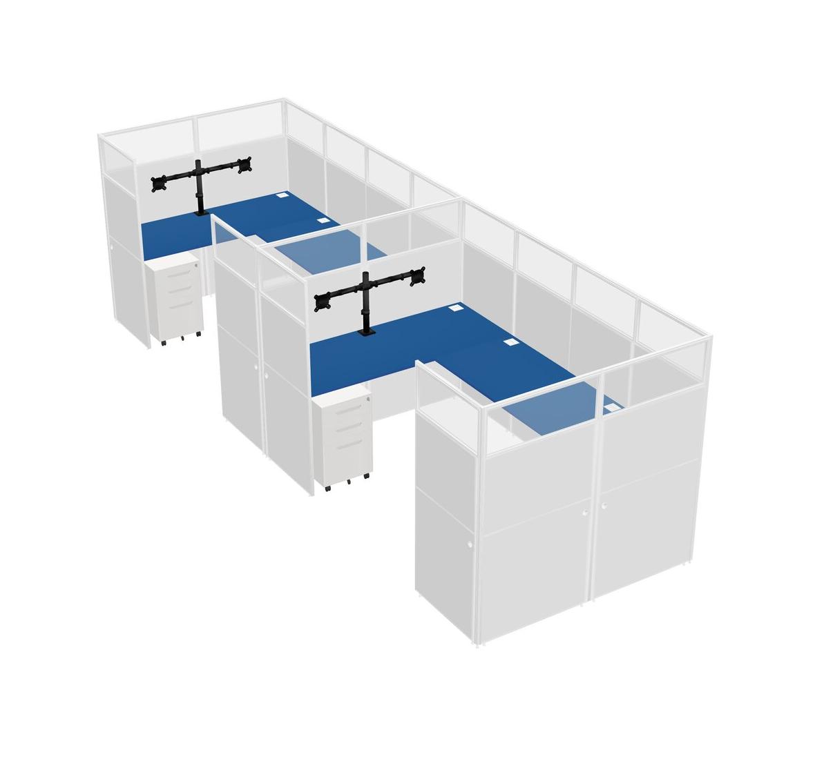 Système De Panneaux En U Prism Blue Pour 2 Personnes + Bras D'écran (bras Doubles) + Tiroirs Mobiles En Métal Pour 2 Utilisateurs