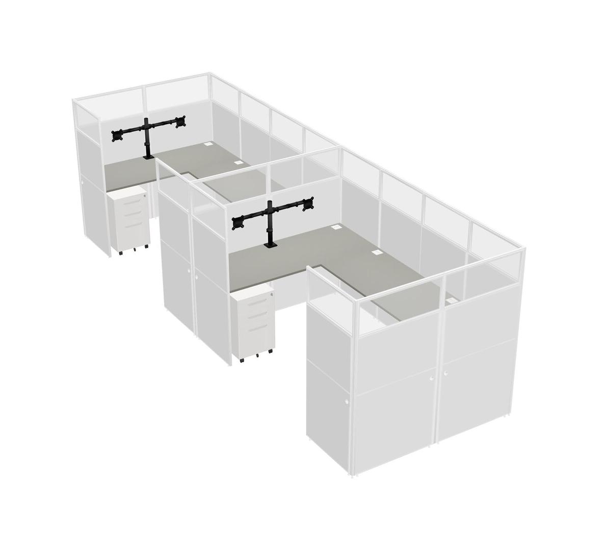 Système De Panneaux En U Grey Shadows Pour 2 Personnes + Bras D'écran (bras Doubles) + Tiroirs Mobiles En Métal Pour 2 Utilisateur(s)