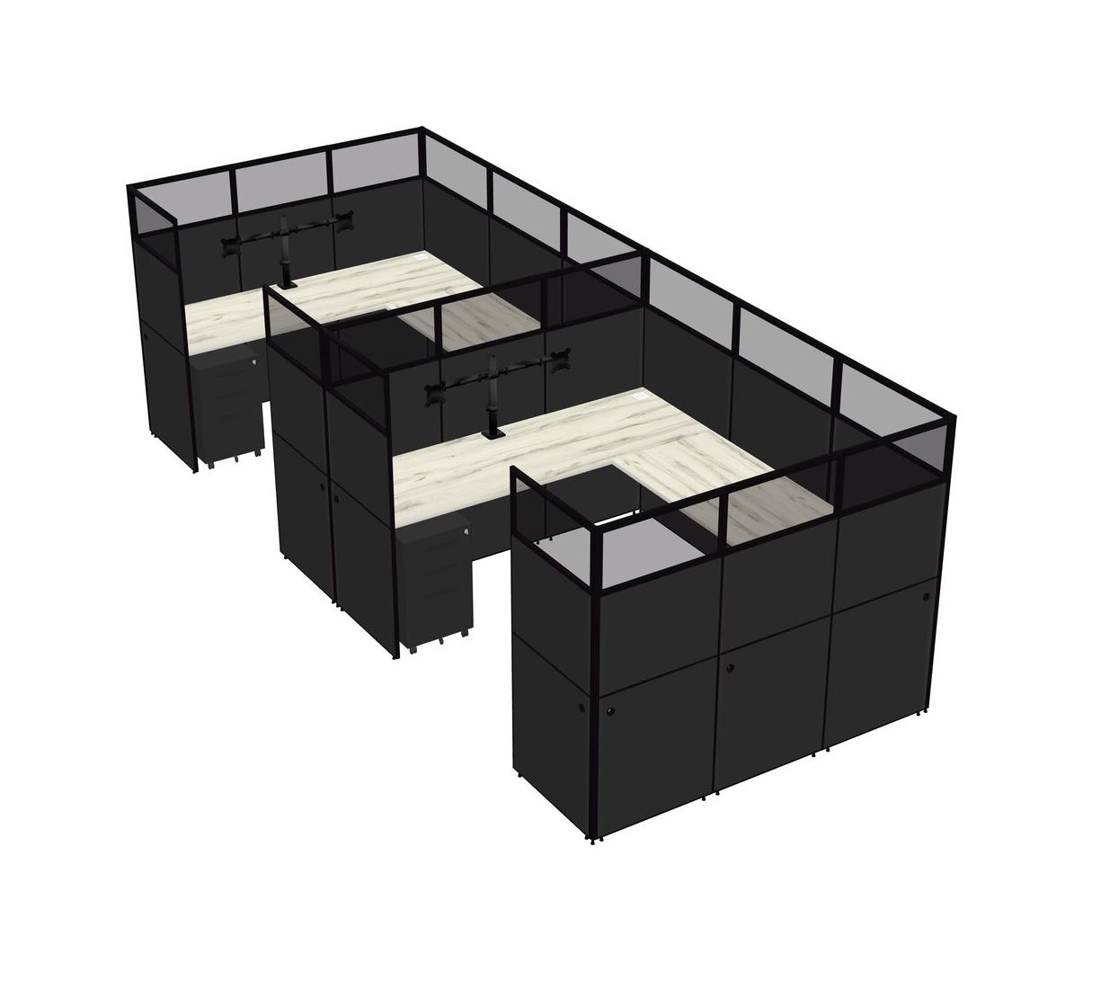 Système De Panneaux En U Heinne Holz Pour 2 Personnes + Bras D'écran (bras Doubles) + Tiroirs Mobiles En Métal Pour 2 Utilisateur(s)