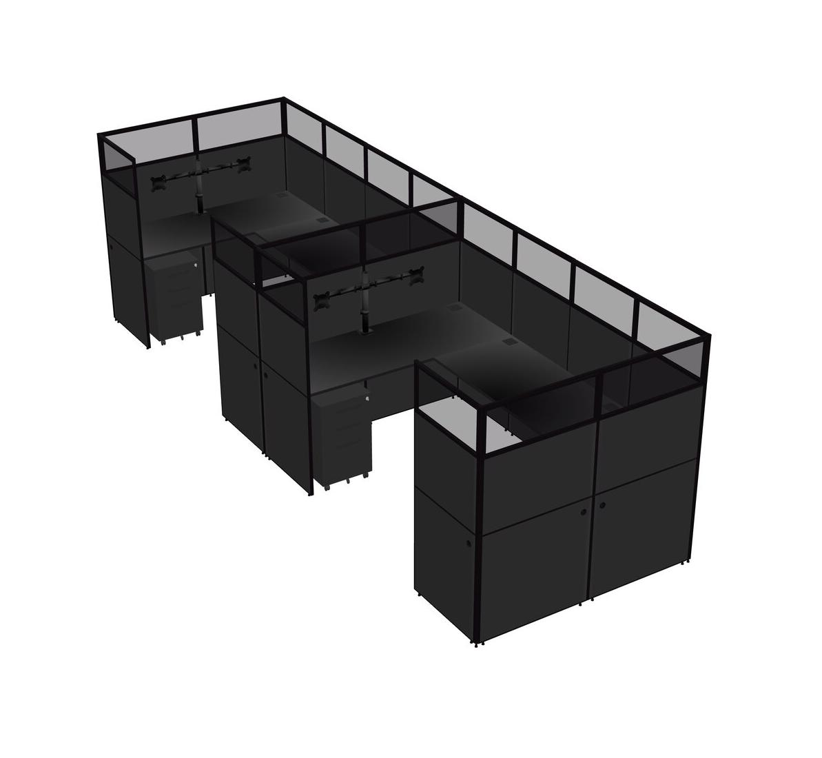 Système De Panneaux En U Noir Pour 2 Personnes + Bras D'écran (bras Doubles) + Tiroirs Mobiles En Métal Pour 2 Utilisateur(s)