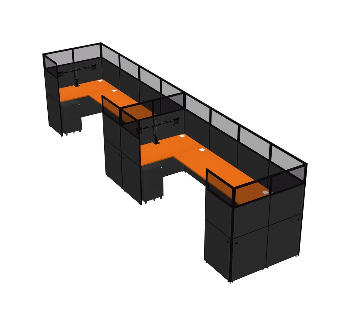 Système De Panneaux En U Orange Pour 2 Personnes + Bras De Moniteur (bras Doubles) + Tiroirs Mobiles En Métal Pour 2 Utilisateur(s)