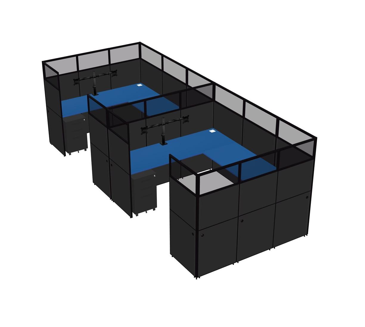 Système De Panneaux En U Prism Blue Pour 2 Personnes + Bras D'écran (bras Doubles) + Tiroirs Mobiles En Métal Pour 2 Utilisateurs