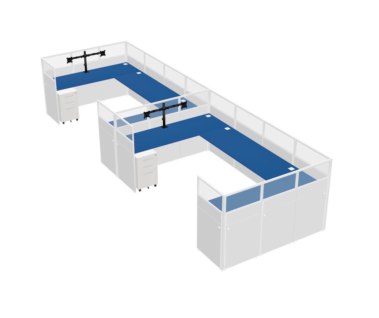 Système De Panneaux En U Prism Blue Pour 2 Personnes + Bras D'écran (bras Doubles) + Tiroirs Mobiles En Métal Pour 2 Utilisateurs