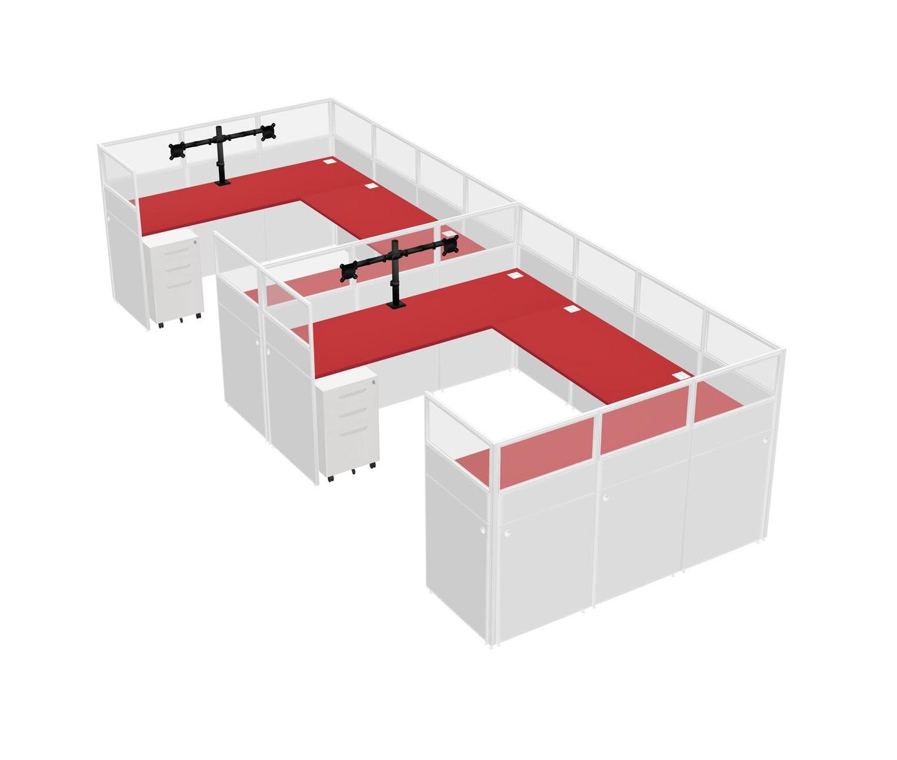 Système De Panneau En U Prism Red Pour 2 Personnes + Bras D'écran (bras Doubles) + Tiroirs Mobiles En Métal Pour 2 Utilisateur(s)