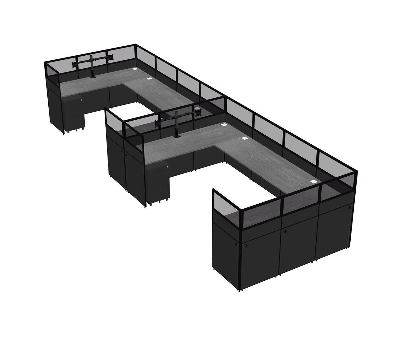 Système De Panneaux En U Gris Pour 2 Personnes + Bras D'écran (bras Doubles) + Tiroirs Mobiles En Métal Pour 2 Utilisateurs