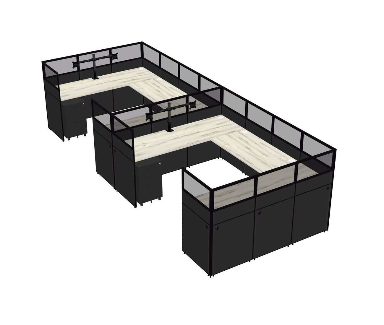Système De Panneaux En U Heinne Holz Pour 2 Personnes + Bras D'écran (bras Doubles) + Tiroirs Mobiles En Métal Pour 2 Utilisateur(s)
