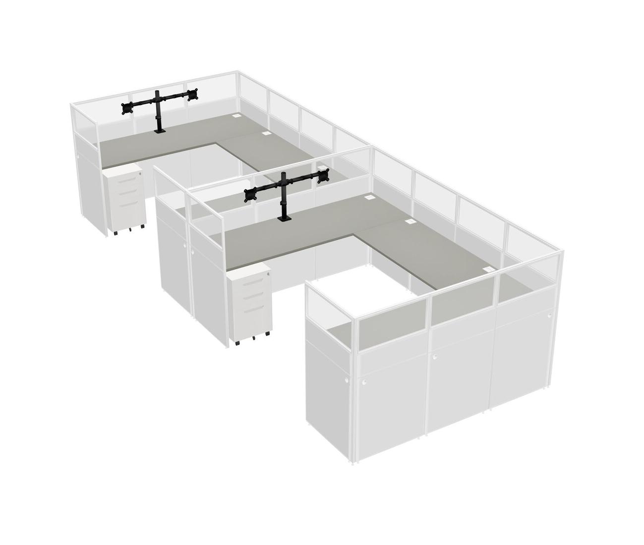 Système De Panneaux En U Grey Shadows Pour 2 Personnes + Bras D'écran (bras Doubles) + Tiroirs Mobiles En Métal Pour 2 Utilisateur(s)