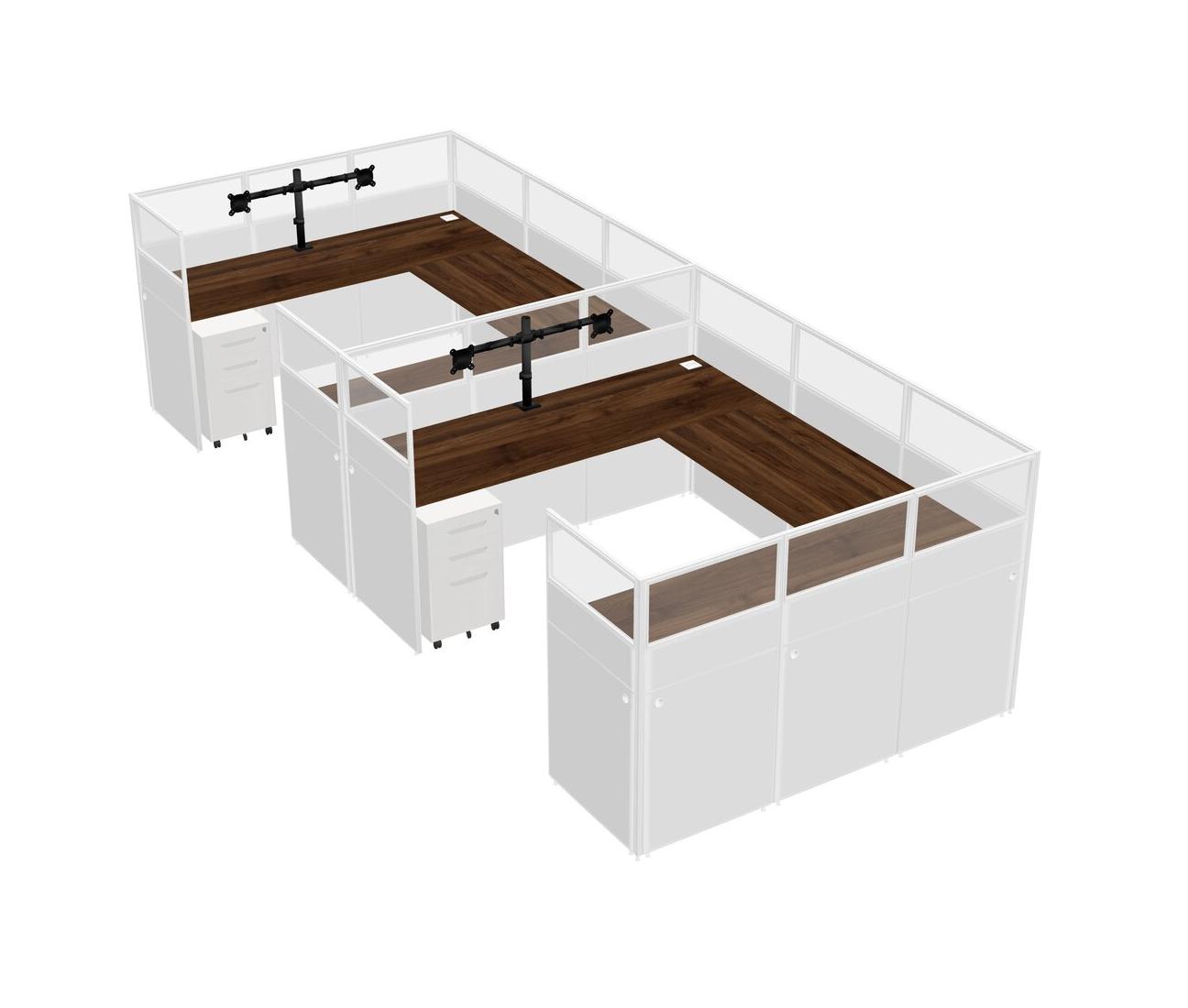 Système De Panneaux En U En Noyer Columbia Pour 2 Personnes + Bras D'écran (bras Doubles) + Tiroirs Mobiles En Métal Pour 2 Utilisateurs