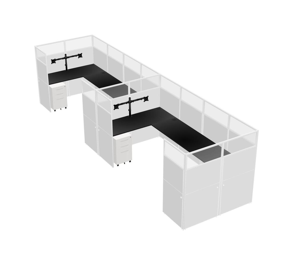 Système De Panneaux En U Noir Pour 2 Personnes + Bras D'écran (bras Doubles) + Tiroirs Mobiles En Métal Pour 2 Utilisateur(s)