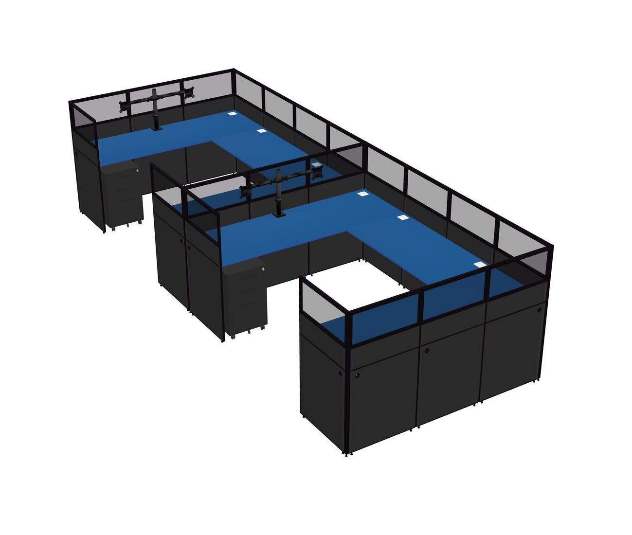 Système De Panneaux En U Prism Blue Pour 2 Personnes + Bras D'écran (bras Doubles) + Tiroirs Mobiles En Métal Pour 2 Utilisateurs