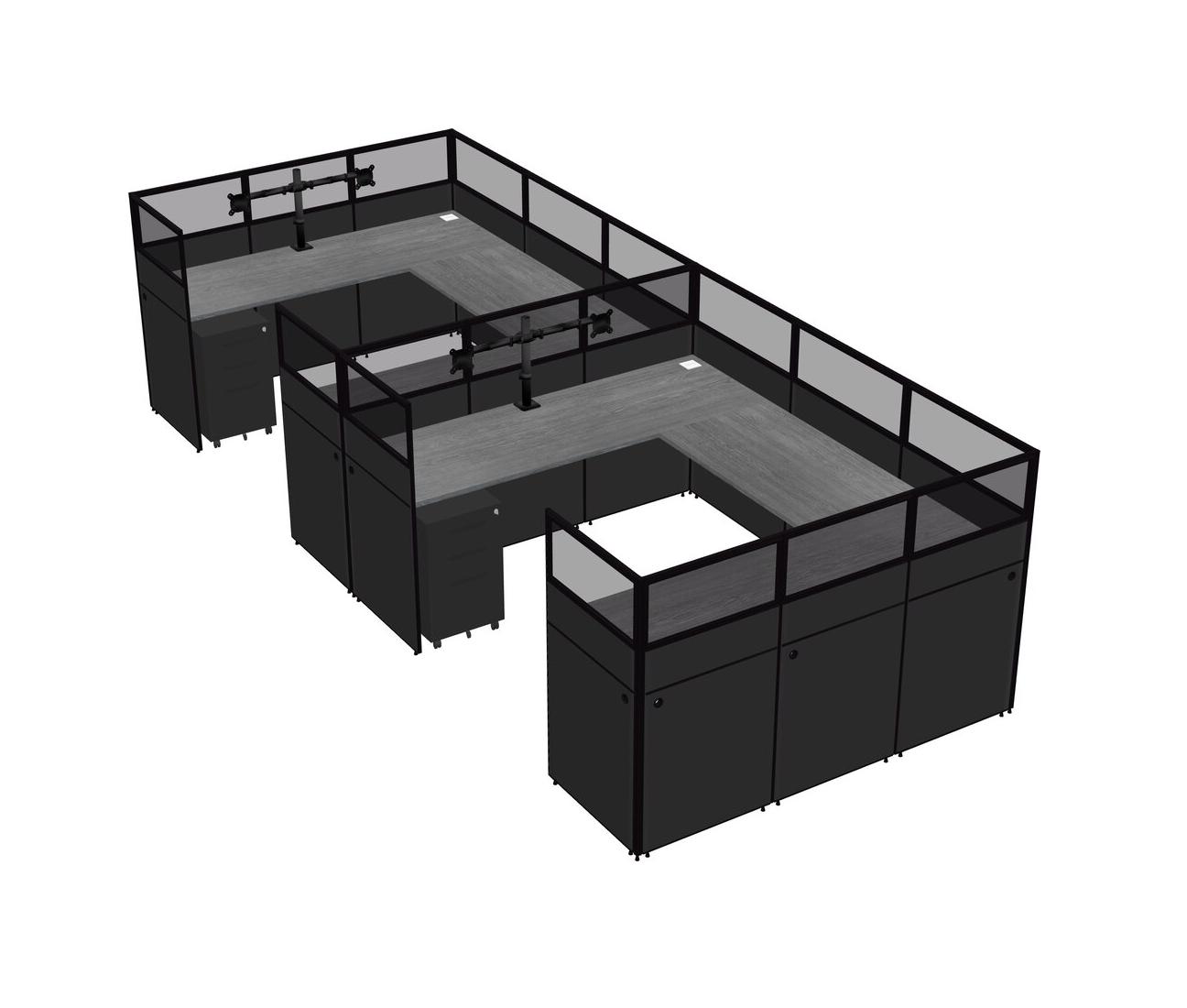 Système De Panneaux En U Gris Pour 2 Personnes + Bras D'écran (bras Doubles) + Tiroirs Mobiles En Métal Pour 2 Utilisateurs