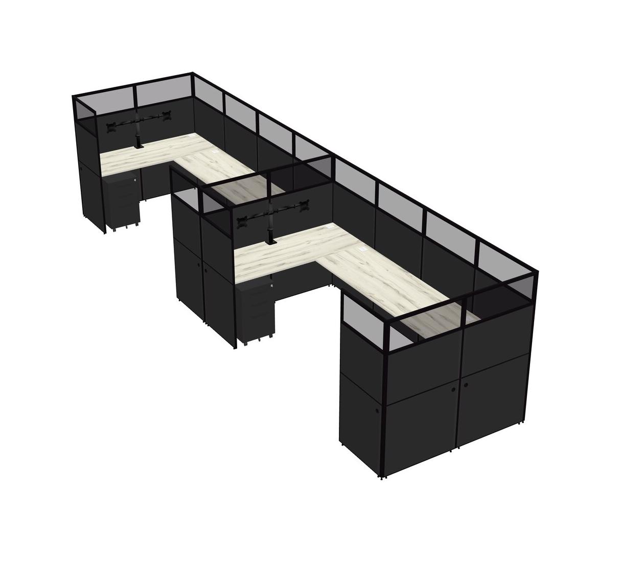 Système De Panneaux En U Heinne Holz Pour 2 Personnes + Bras D'écran (bras Doubles) + Tiroirs Mobiles En Métal Pour 2 Utilisateur(s)