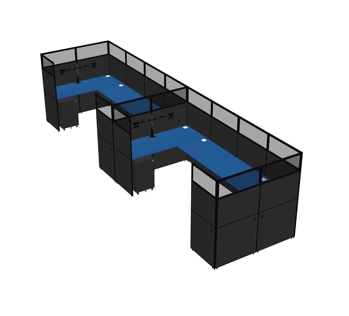 Système De Panneaux En U Prism Blue Pour 2 Personnes + Bras D'écran (bras Doubles) + Tiroirs Mobiles En Métal Pour 2 Utilisateurs