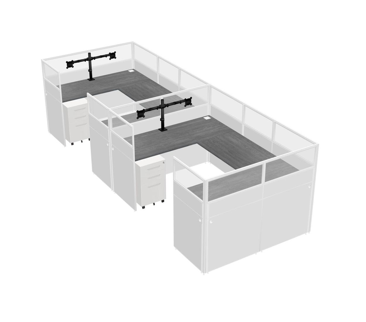 Système De Panneaux En U Gris Pour 2 Personnes + Bras D'écran (bras Doubles) + Tiroirs Mobiles En Métal Pour 2 Utilisateurs
