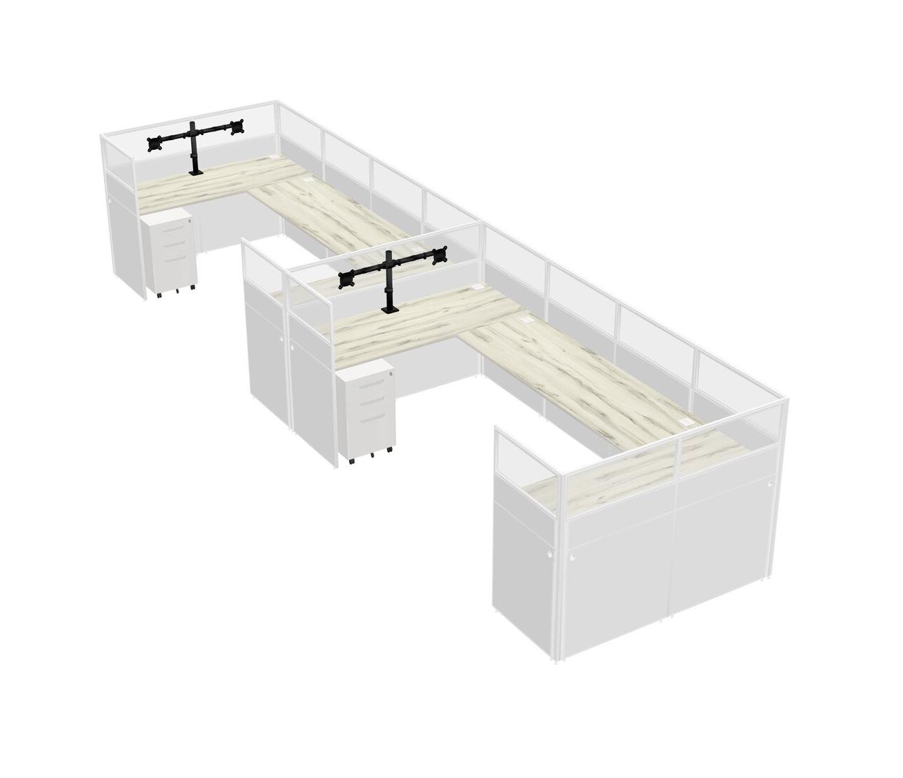 Système De Panneaux En U Heinne Holz Pour 2 Personnes + Bras D'écran (bras Doubles) + Tiroirs Mobiles En Métal Pour 2 Utilisateur(s)