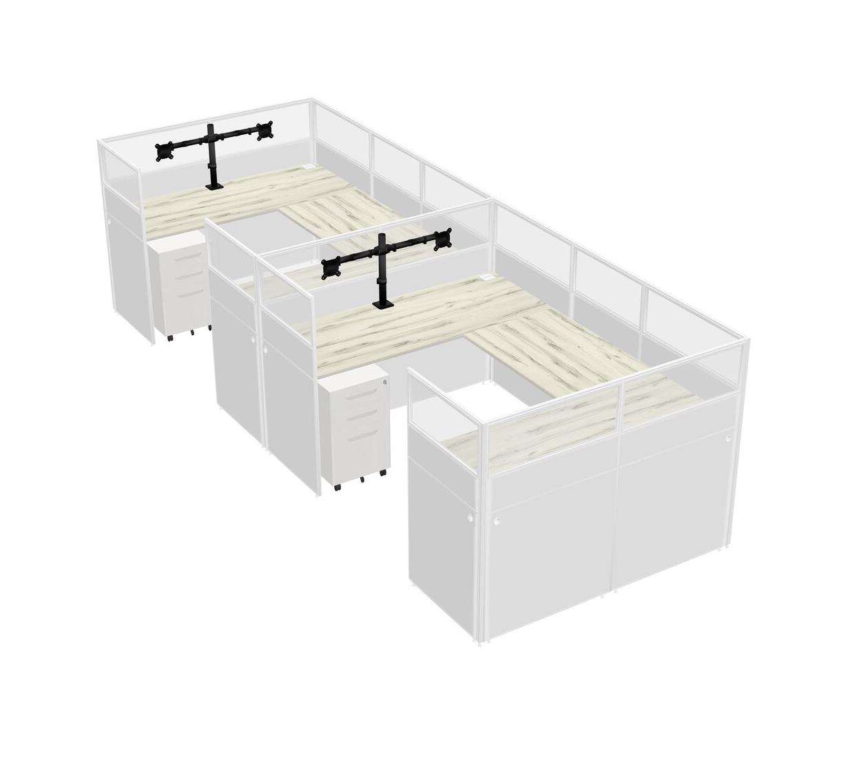 Système De Panneaux En U Heinne Holz Pour 2 Personnes + Bras D'écran (bras Doubles) + Tiroirs Mobiles En Métal Pour 2 Utilisateur(s)