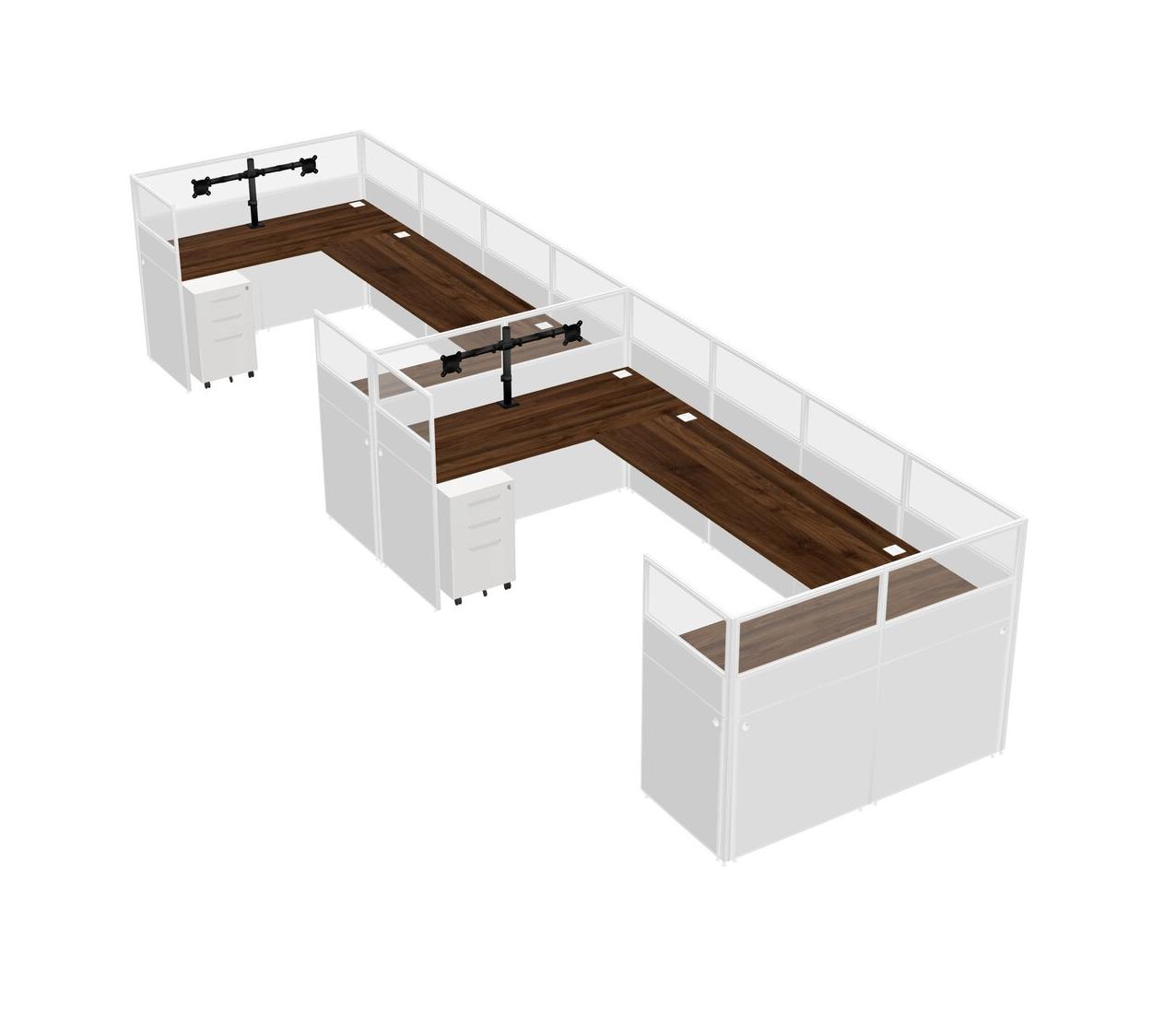 Système De Panneaux En U En Noyer Columbia Pour 2 Personnes + Bras D'écran (bras Doubles) + Tiroirs Mobiles En Métal Pour 2 Utilisateurs