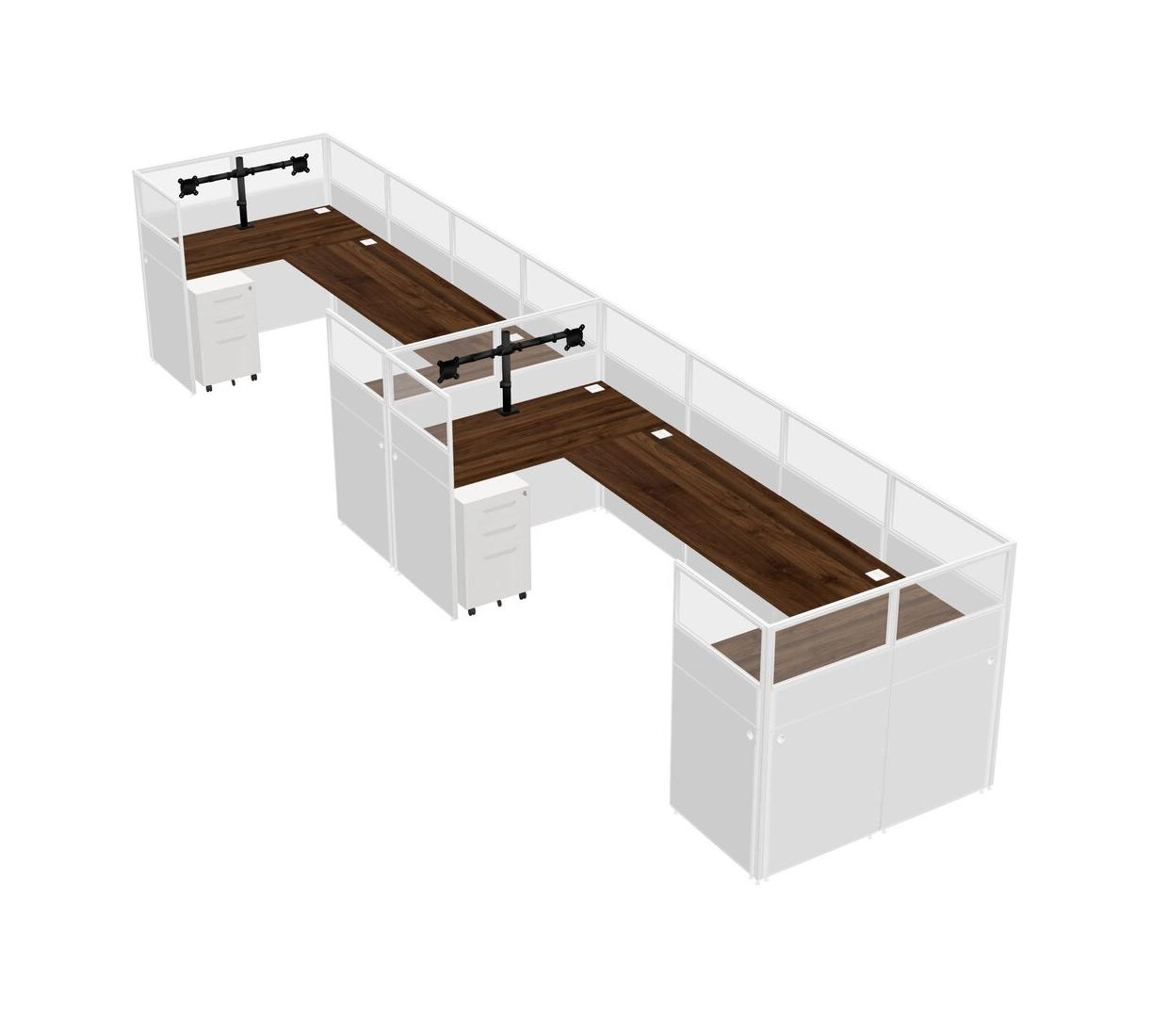 Système De Panneaux En U En Noyer Columbia Pour 2 Personnes + Bras D'écran (bras Doubles) + Tiroirs Mobiles En Métal Pour 2 Utilisateurs