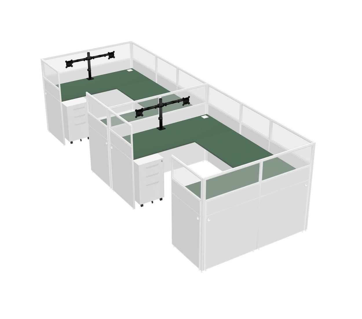 Système De Panneaux En U Vert Pour 2 Personnes + Bras De Moniteur (bras Doubles) + Tiroirs Mobiles En Métal Pour 2 Utilisateur(s)