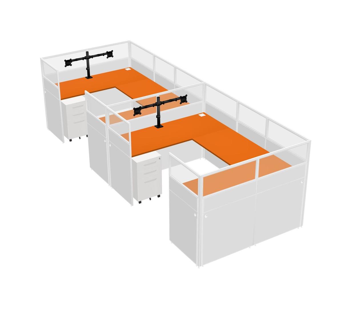 Système De Panneaux En U Orange Pour 2 Personnes + Bras De Moniteur (bras Doubles) + Tiroirs Mobiles En Métal Pour 2 Utilisateur(s)