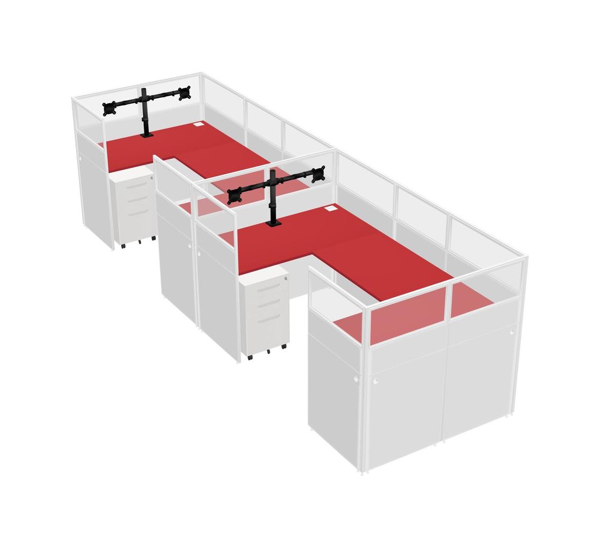 Système De Panneau En U Prism Red Pour 2 Personnes + Bras D'écran (bras Doubles) + Tiroirs Mobiles En Métal Pour 2 Utilisateur(s)