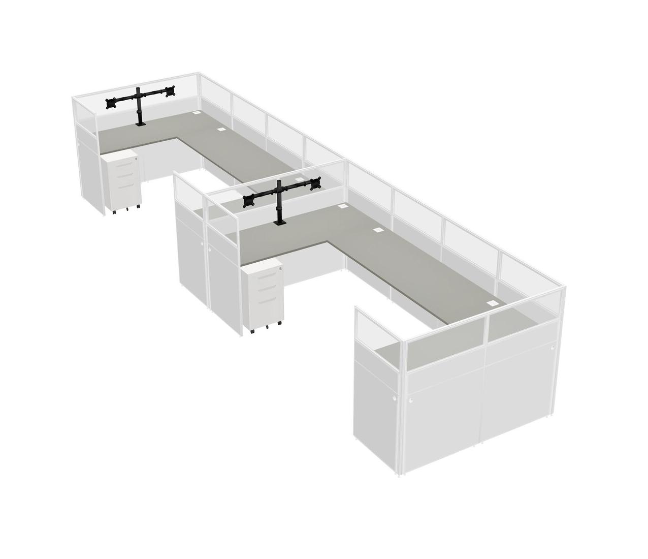 Système De Panneaux En U Grey Shadows Pour 2 Personnes + Bras D'écran (bras Doubles) + Tiroirs Mobiles En Métal Pour 2 Utilisateur(s)