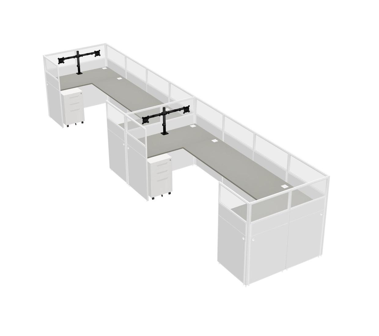 Système De Panneaux En U Grey Shadows Pour 2 Personnes + Bras D'écran (bras Doubles) + Tiroirs Mobiles En Métal Pour 2 Utilisateur(s)
