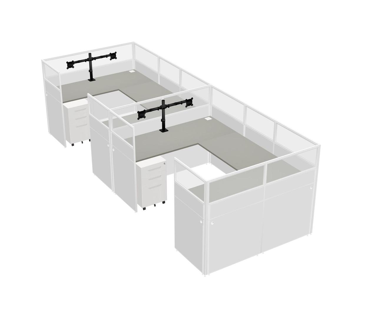 Système De Panneaux En U Grey Shadows Pour 2 Personnes + Bras D'écran (bras Doubles) + Tiroirs Mobiles En Métal Pour 2 Utilisateur(s)