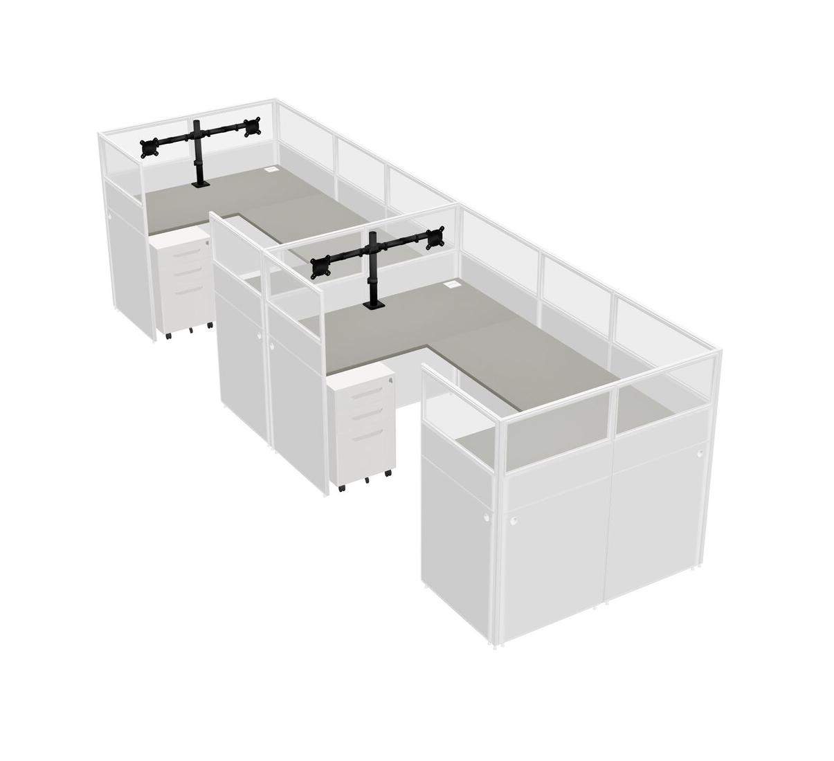 Système De Panneaux En U Grey Shadows Pour 2 Personnes + Bras D'écran (bras Doubles) + Tiroirs Mobiles En Métal Pour 2 Utilisateur(s)