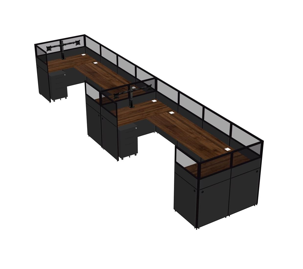 Système De Panneaux En U En Noyer Columbia Pour 2 Personnes + Bras D'écran (bras Doubles) + Tiroirs Mobiles En Métal Pour 2 Utilisateurs