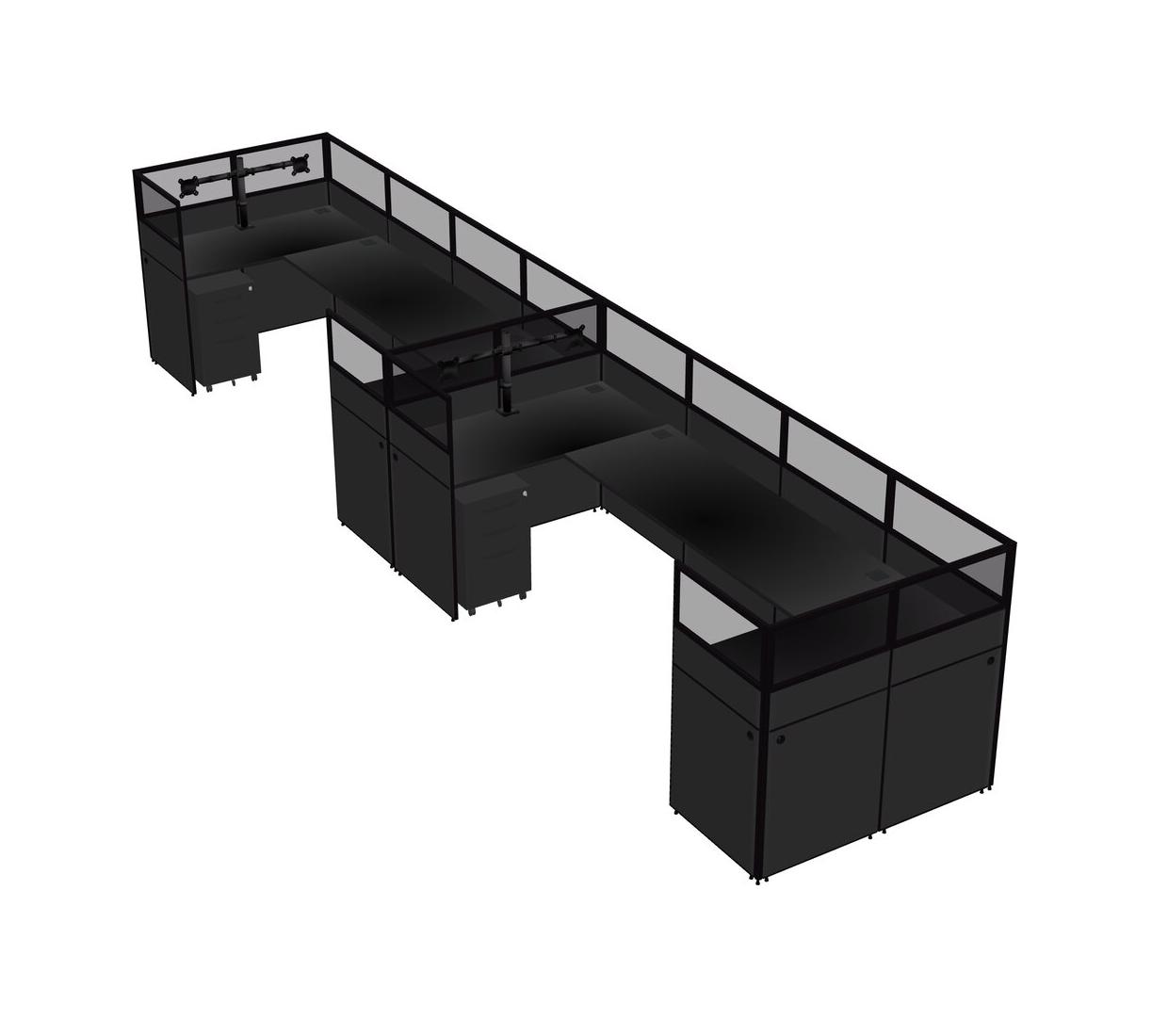 Système De Panneaux En U Noir Pour 2 Personnes + Bras D'écran (bras Doubles) + Tiroirs Mobiles En Métal Pour 2 Utilisateur(s)