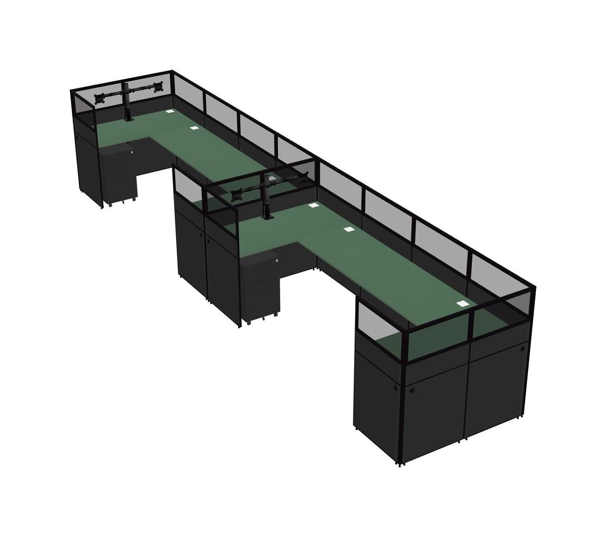 Système De Panneaux En U Vert Pour 2 Personnes + Bras De Moniteur (bras Doubles) + Tiroirs Mobiles En Métal Pour 2 Utilisateur(s)