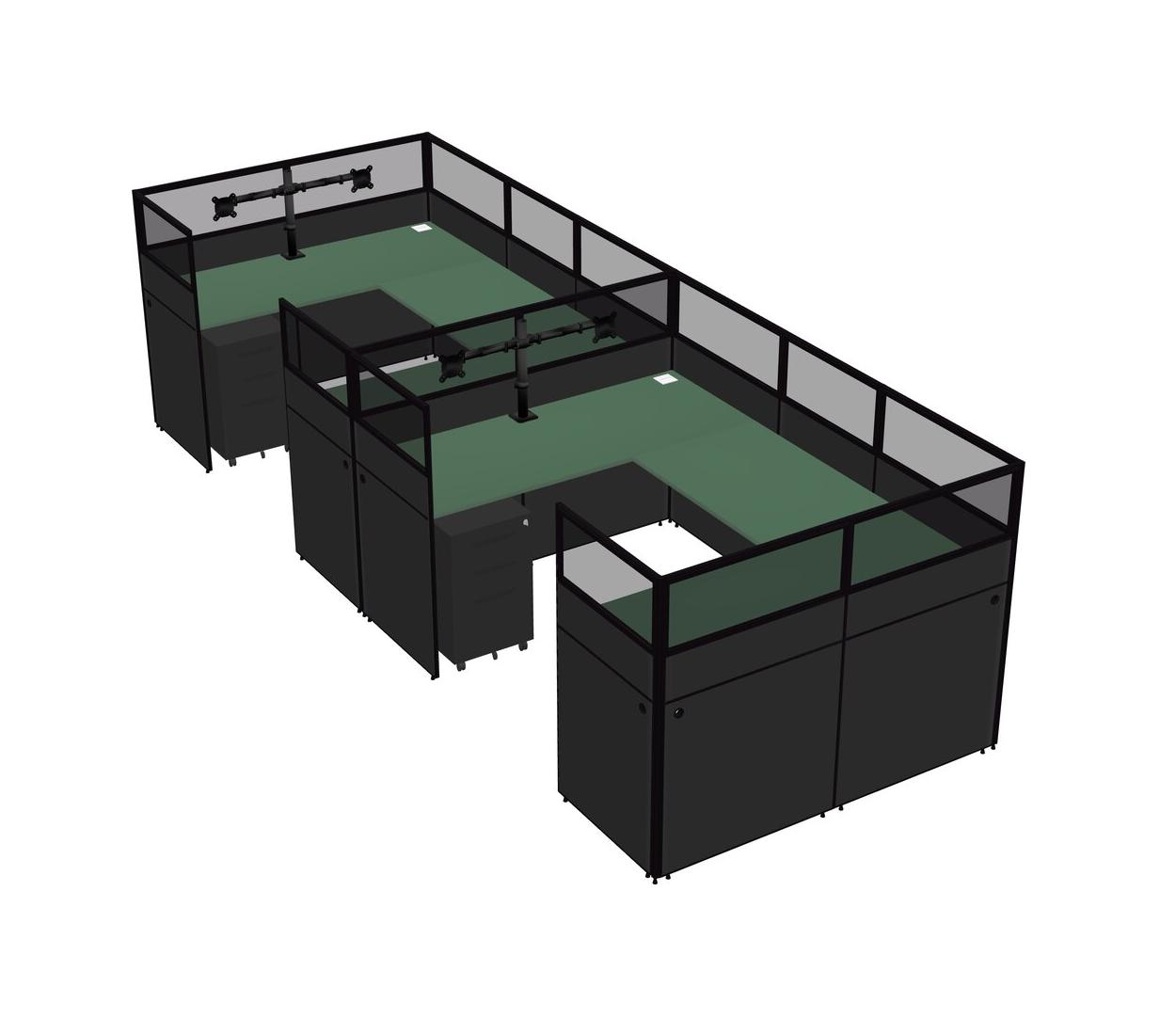 Système De Panneaux En U Vert Pour 2 Personnes + Bras De Moniteur (bras Doubles) + Tiroirs Mobiles En Métal Pour 2 Utilisateur(s)