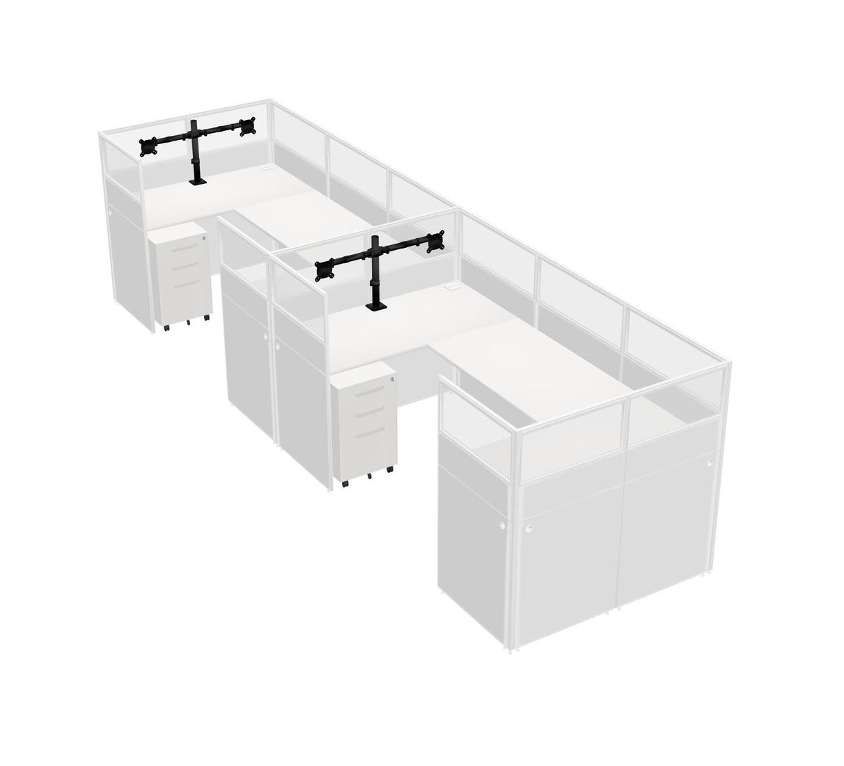 Système De Panneaux En U Blanc Pour 2 Personnes + Bras D'écran (bras Doubles) + Tiroirs Mobiles En Métal Pour 2 Utilisateurs