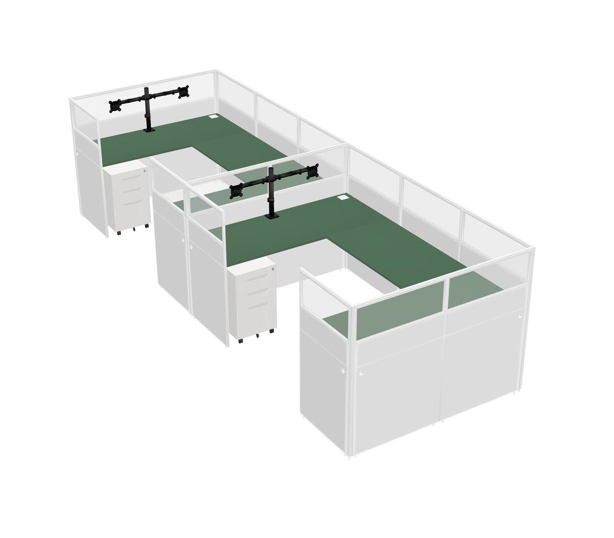 Système De Panneaux En U Vert Pour 2 Personnes + Bras De Moniteur (bras Doubles) + Tiroirs Mobiles En Métal Pour 2 Utilisateur(s)