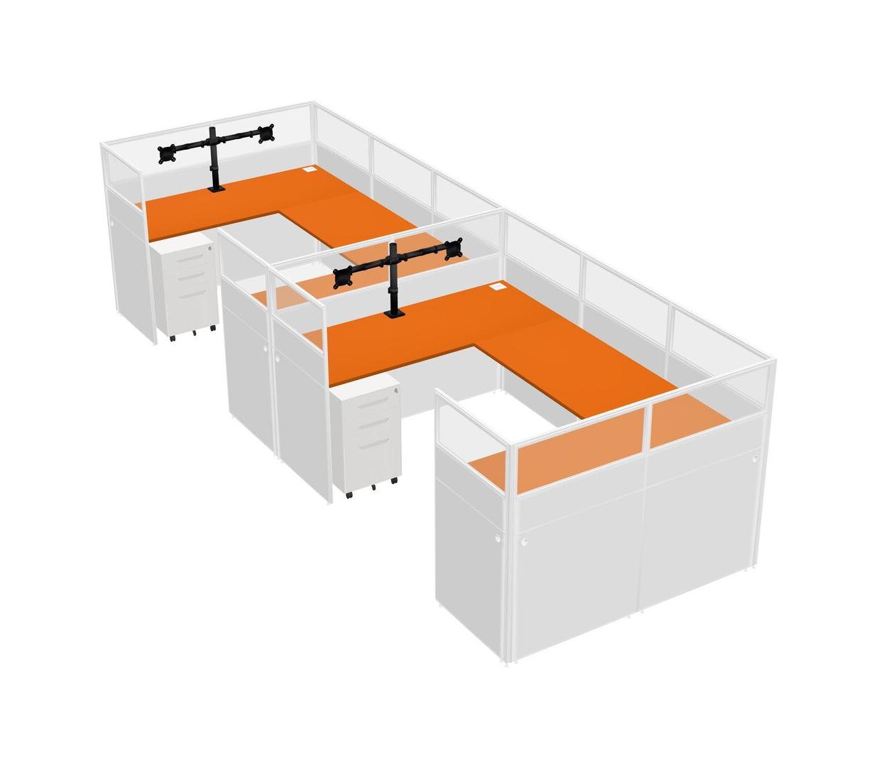 Système De Panneaux En U Orange Pour 2 Personnes + Bras De Moniteur (bras Doubles) + Tiroirs Mobiles En Métal Pour 2 Utilisateur(s)