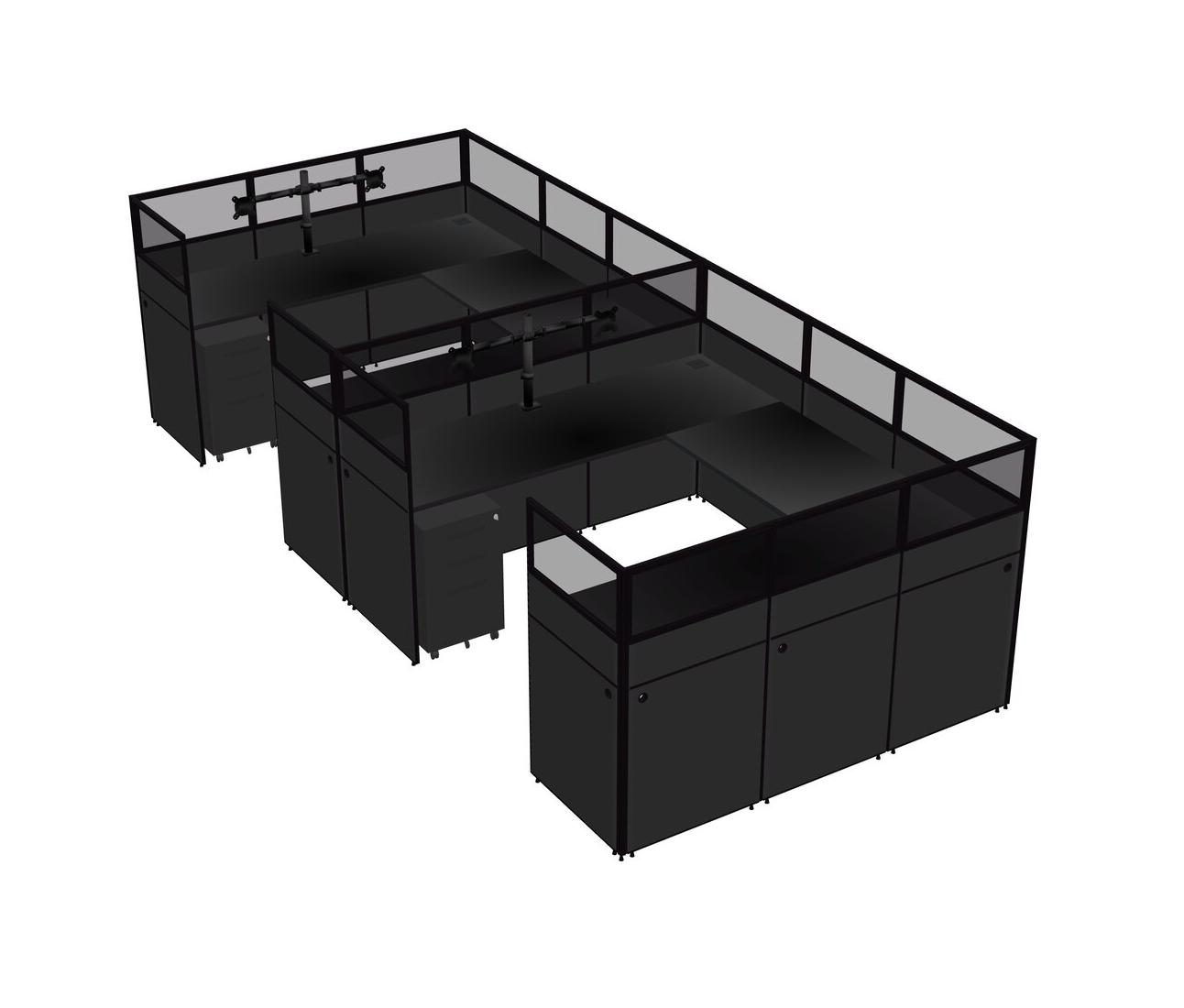 Système De Panneaux En U Noir Pour 2 Personnes + Bras D'écran (bras Doubles) + Tiroirs Mobiles En Métal Pour 2 Utilisateur(s)