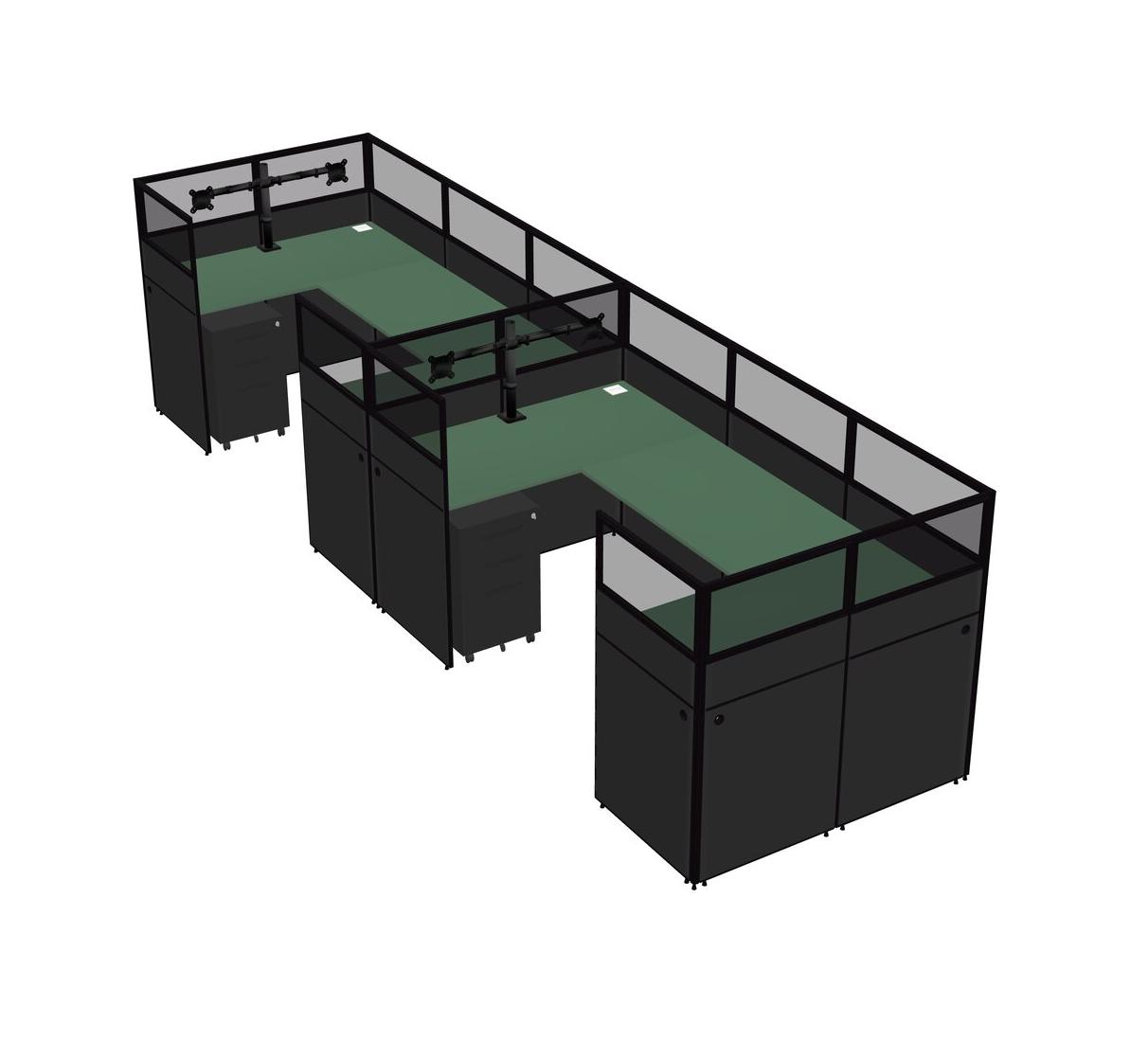 Système De Panneaux En U Vert Pour 2 Personnes + Bras De Moniteur (bras Doubles) + Tiroirs Mobiles En Métal Pour 2 Utilisateur(s)